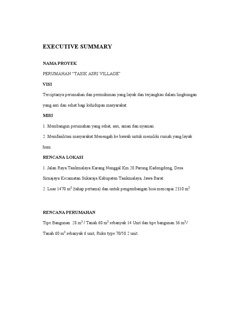 CONTOH PROPOSAL BISNIS PLAN DEVELOPER PROPERTI Research Papers - Academia.edu