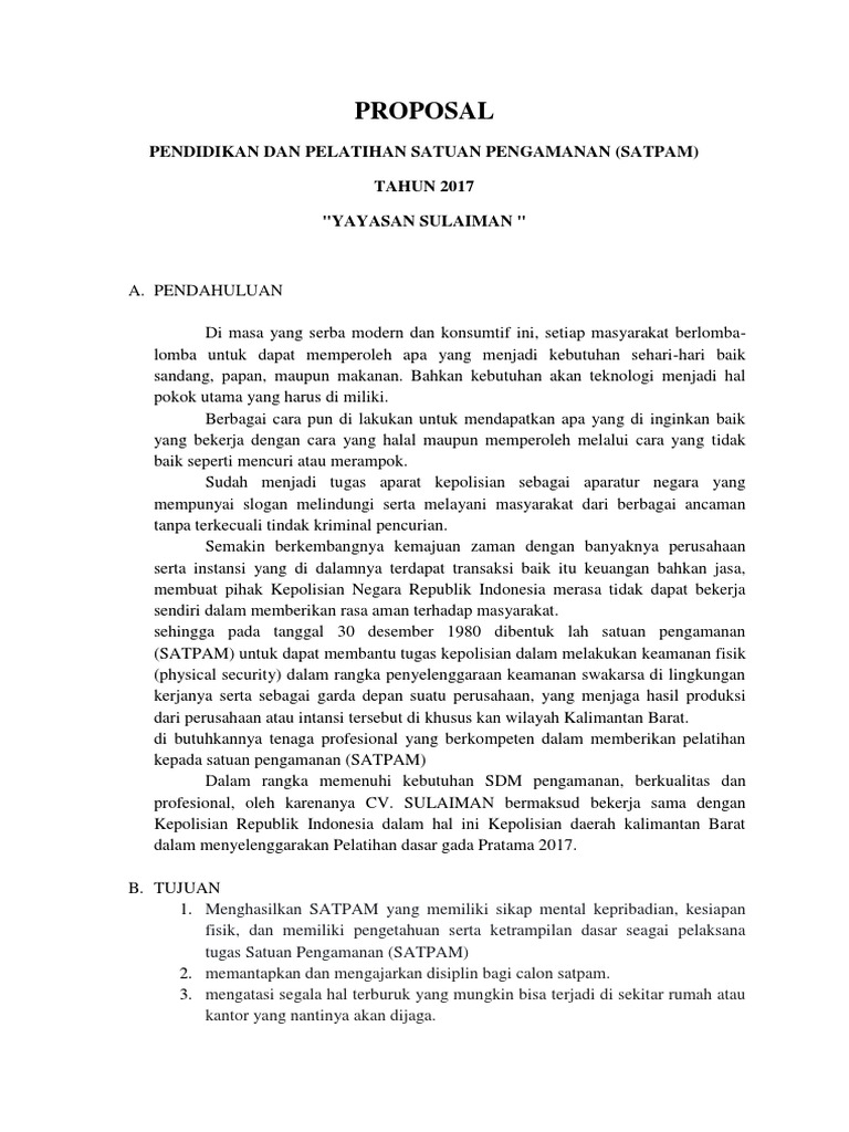 Contoh Proposal Kegiatan Pelatihan Satpam
