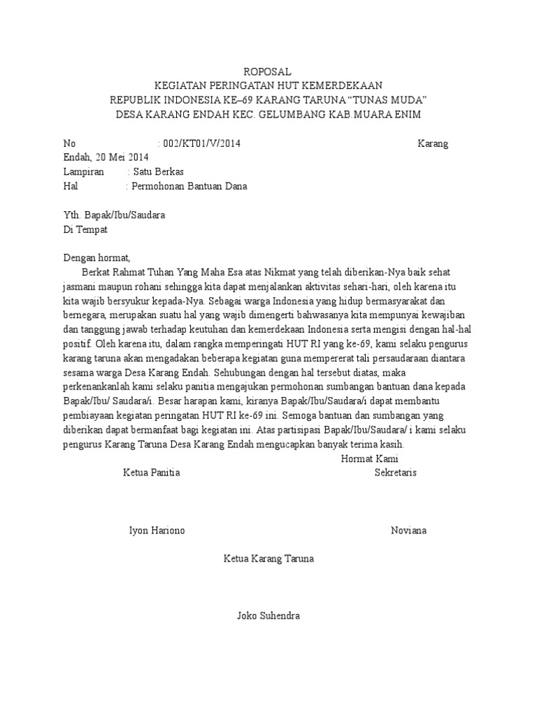 Contoh Surat Permohonan Bantuan Dana dan Proposal Kegiatan HUT RI | Proposal, Surat, Tesis