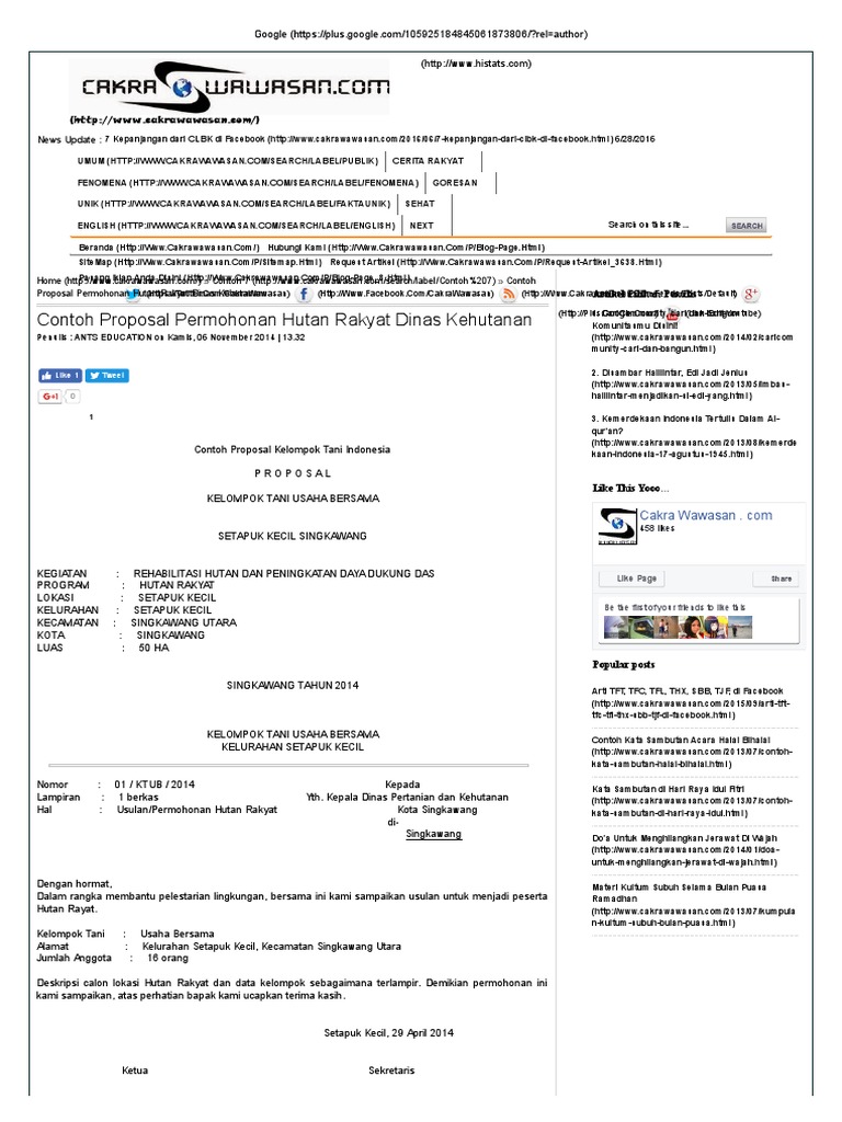 Contoh Proposal Permohonan Hutan Rakyat Dinas Kehutanan - Cakra Wawasan