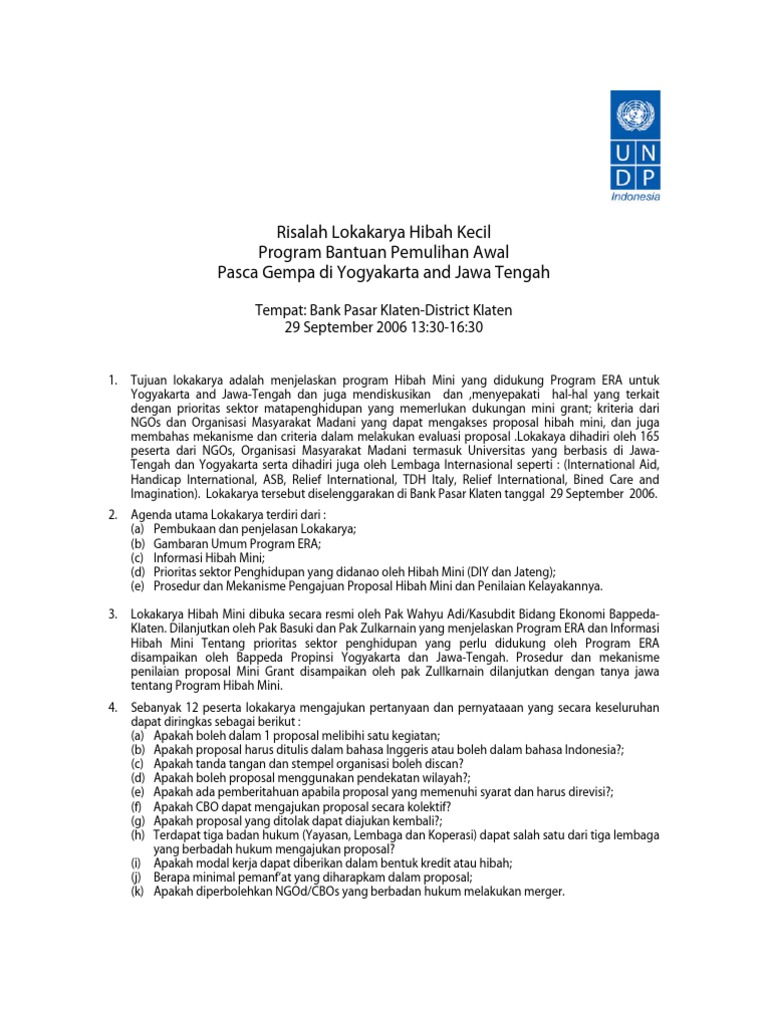 Risalah Lokakarya Undp Minutes of Mini Grant Workshop Id