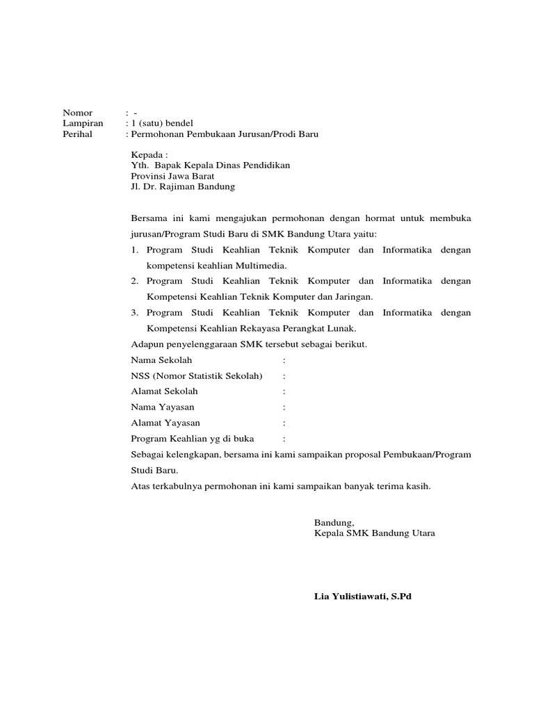 Surat Permohonan Ijin Pembukaan Prodi Baru Smk