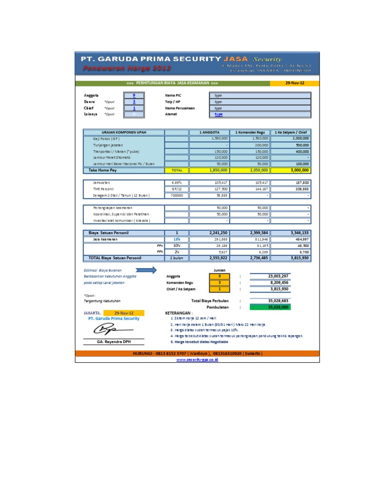contoh penawaran satpam