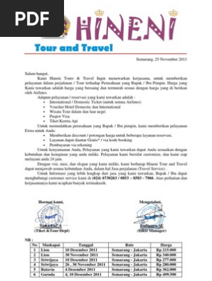 Surat Penawaran Tour Dan Travel