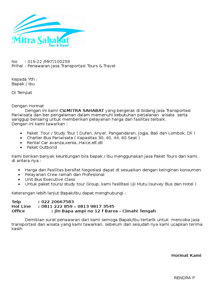 DOC) Contoh Surat Penawaran Paket Tour untuk Anak Sekolah | yozar tindhana - Academia.edu