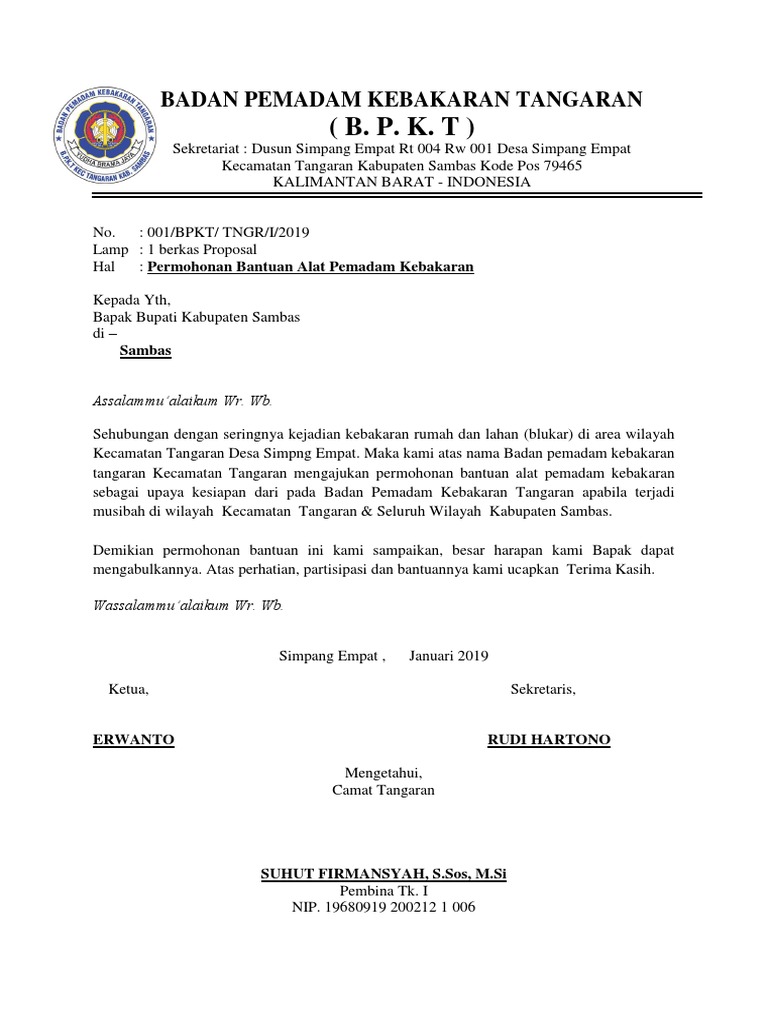 Contoh Surat Permohonan Bantuan Alat Pemadam Kebakaran - Berbagai Alat