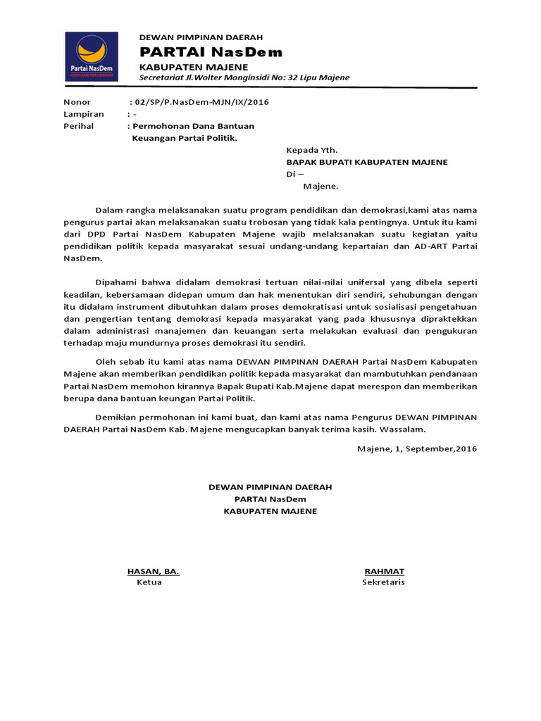 permohonan bantuan partai