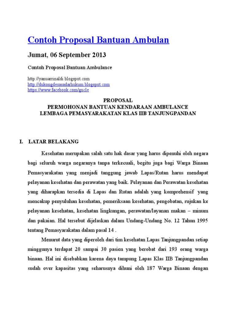 Contoh Proposal Bantuan Ambulan