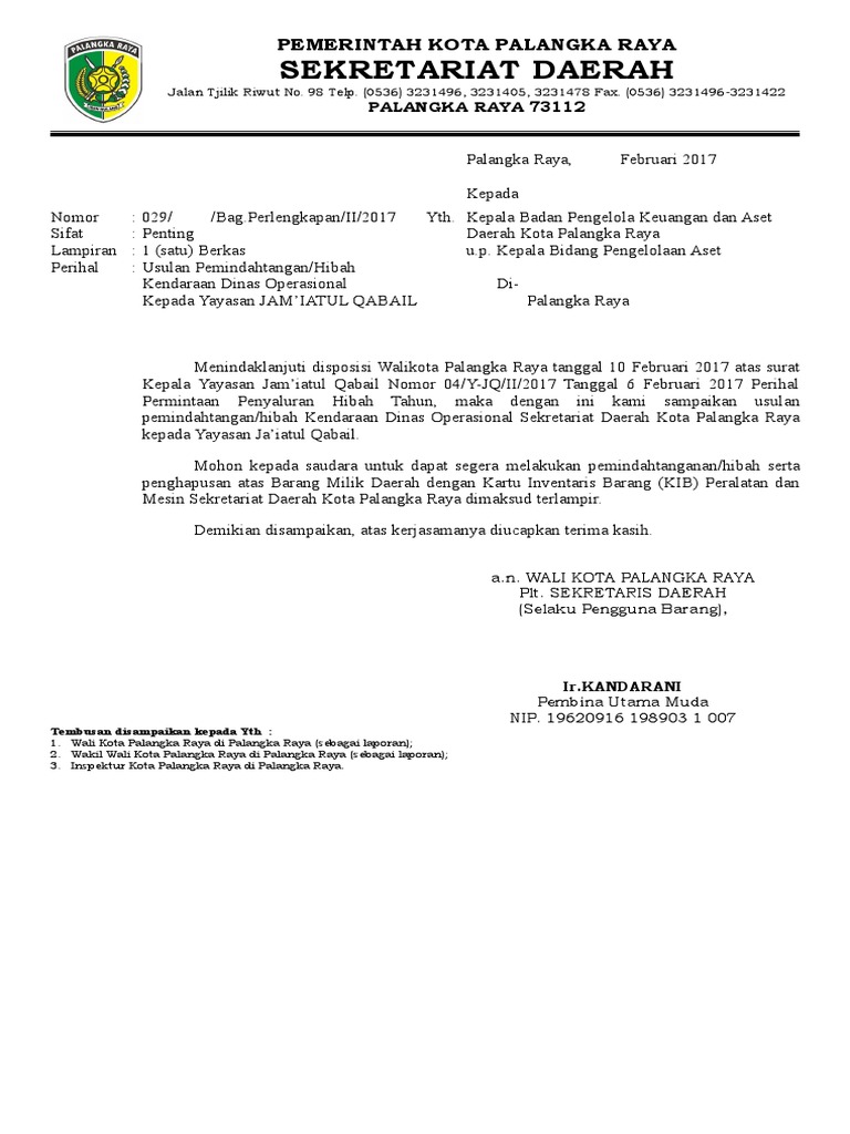 Permohonan Hibah Kendaraan Ke Yayasan Jam’Iatul Qabail