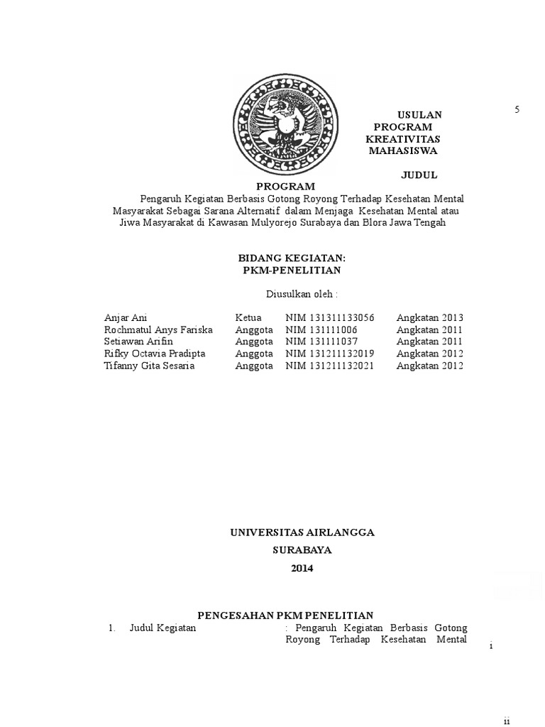 PROPOSAL PROGRAM KREATIVITAS MAHASISWA JUDUL .PENGESAHAN PROPOSAL PKM- PENELITIAN 1. Judul Kegiatan - [PDF Document]