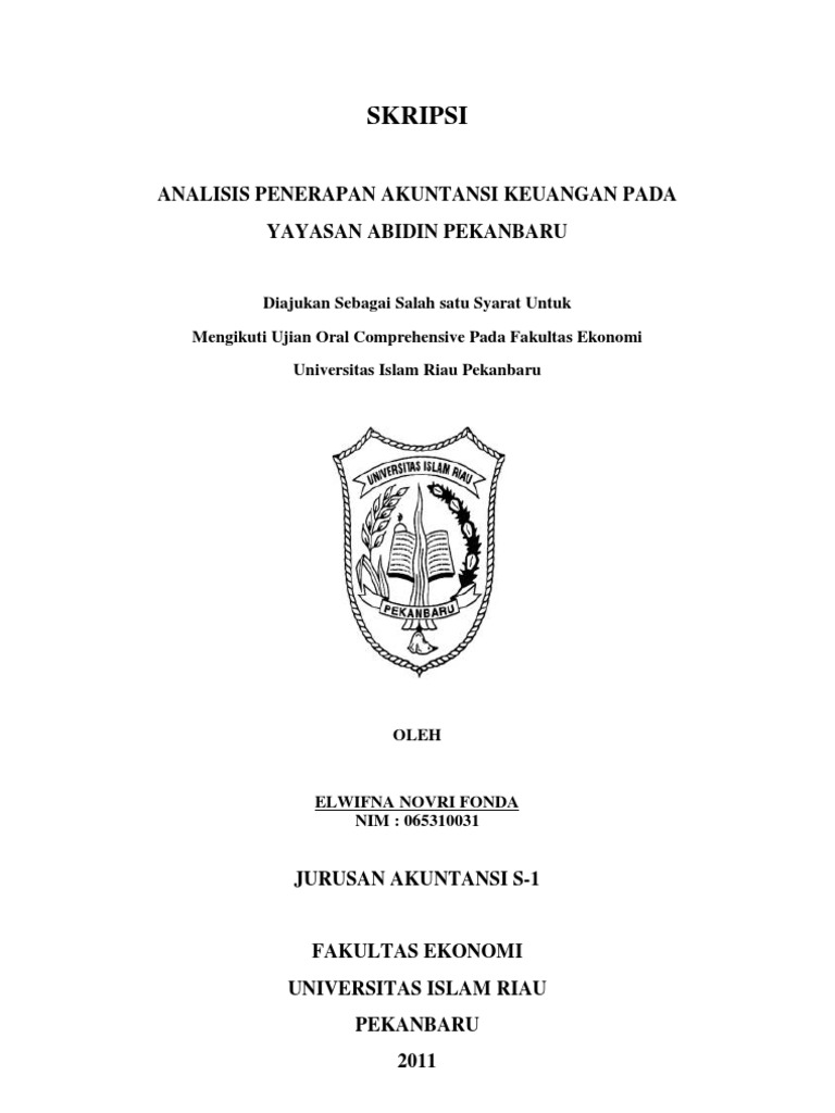 Analisis Penerapan Akuntansi Keuangan Pada Yayasan Abidin Pekanbaru 1