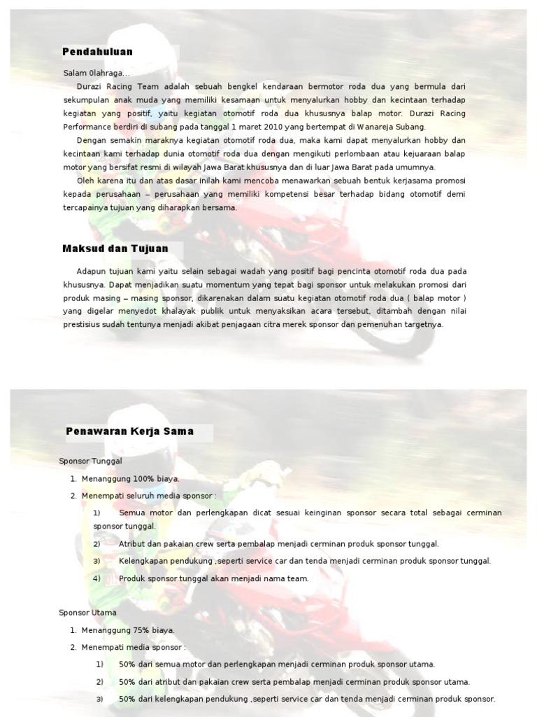 Contoh Proposal Sponsor Team Balap Motor - Berbagi Contoh Proposal