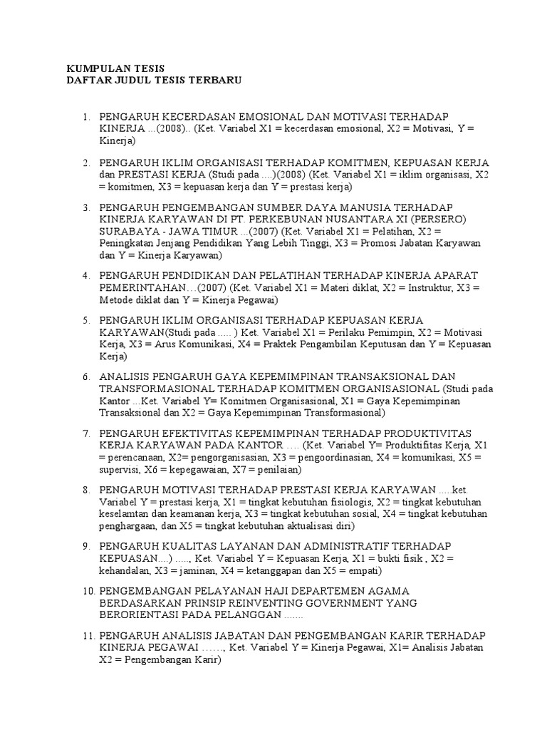 Contoh Tesis Manajemen Sdm Terbaru | Contoh Soal Dan Materi Pelajaran 10