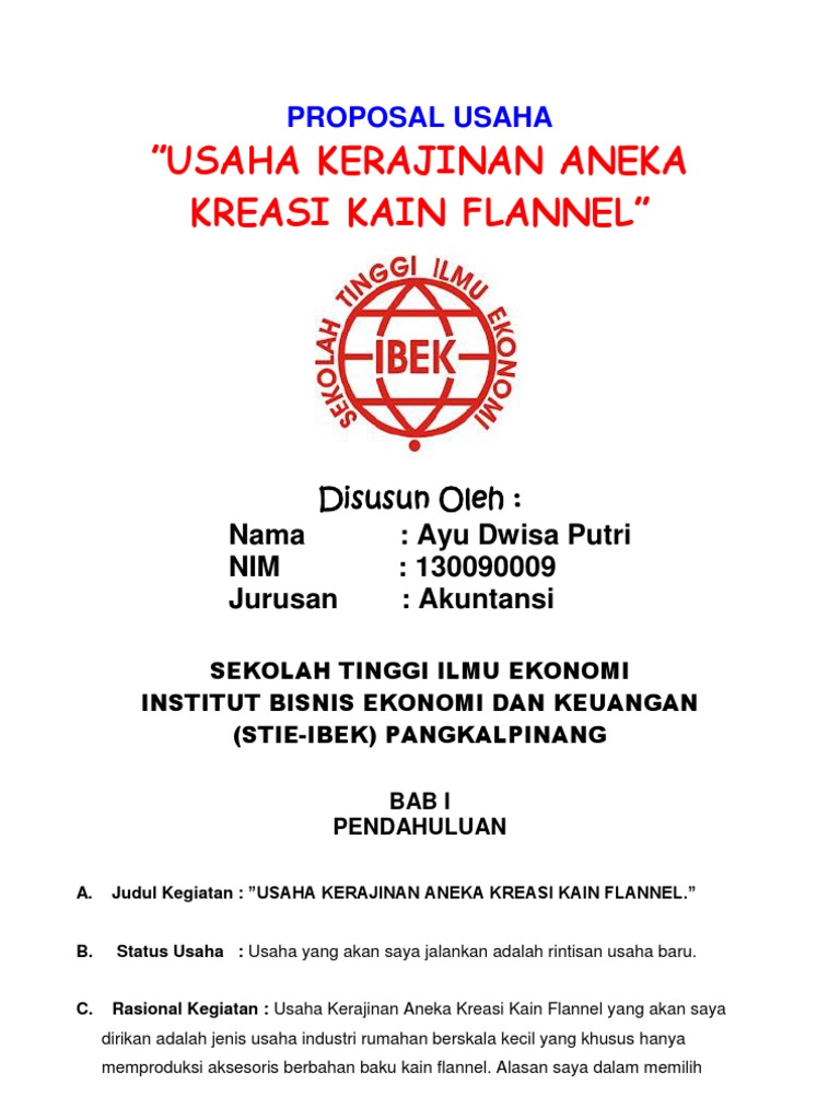 PDF) Proposal Usaha Judul : Usaha Kerajinan Gantungan dan Bross Kain Flanel Oleh | Ekky Dipayana - Academia.edu