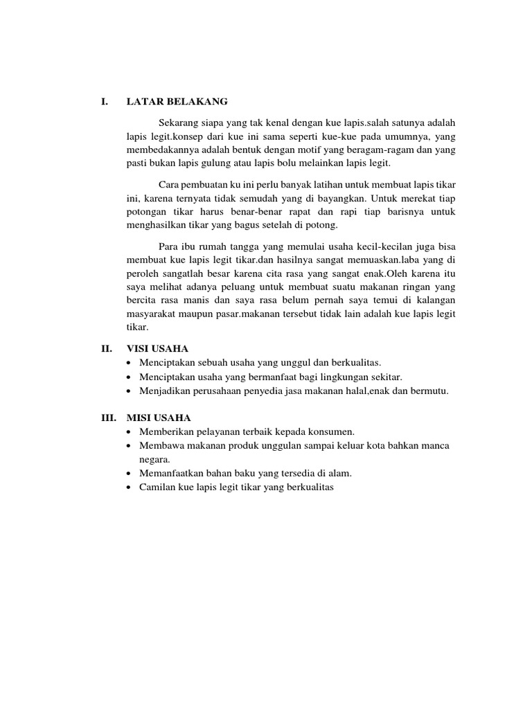 Contoh Proposal Usaha Kue Lapis Legit - Berbagai Kue