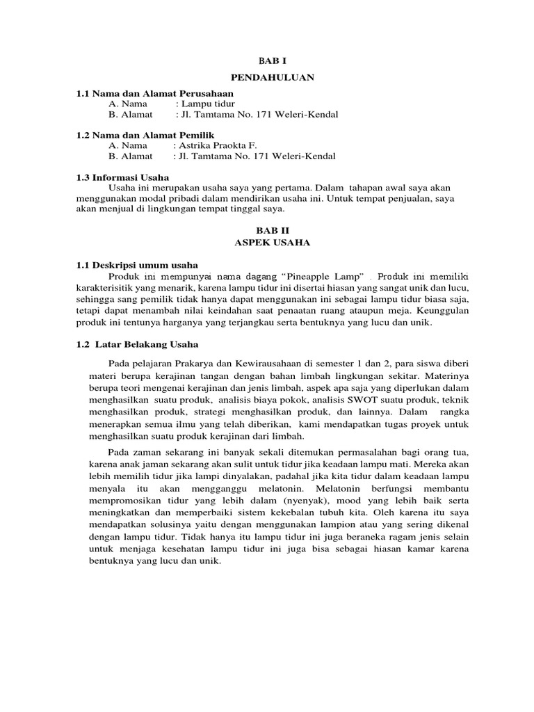 Contoh Proposal Usaha Lampu Tidur