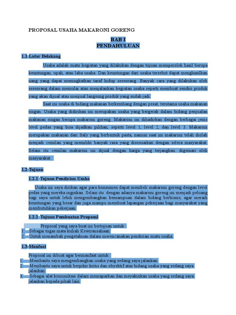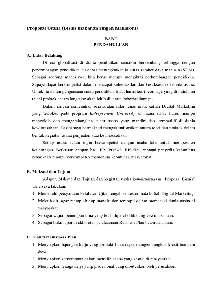 Pdf) Contoh Proposal Usaha Makanan Ringan Makaroni - Seputar Proposal
