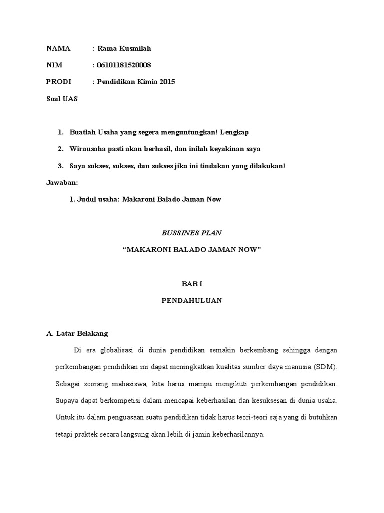 DOC) BUSSINES PLAN (RANCANGAN USAHA) MAKARONI BALADO | Yan Grandis - Academia.edu