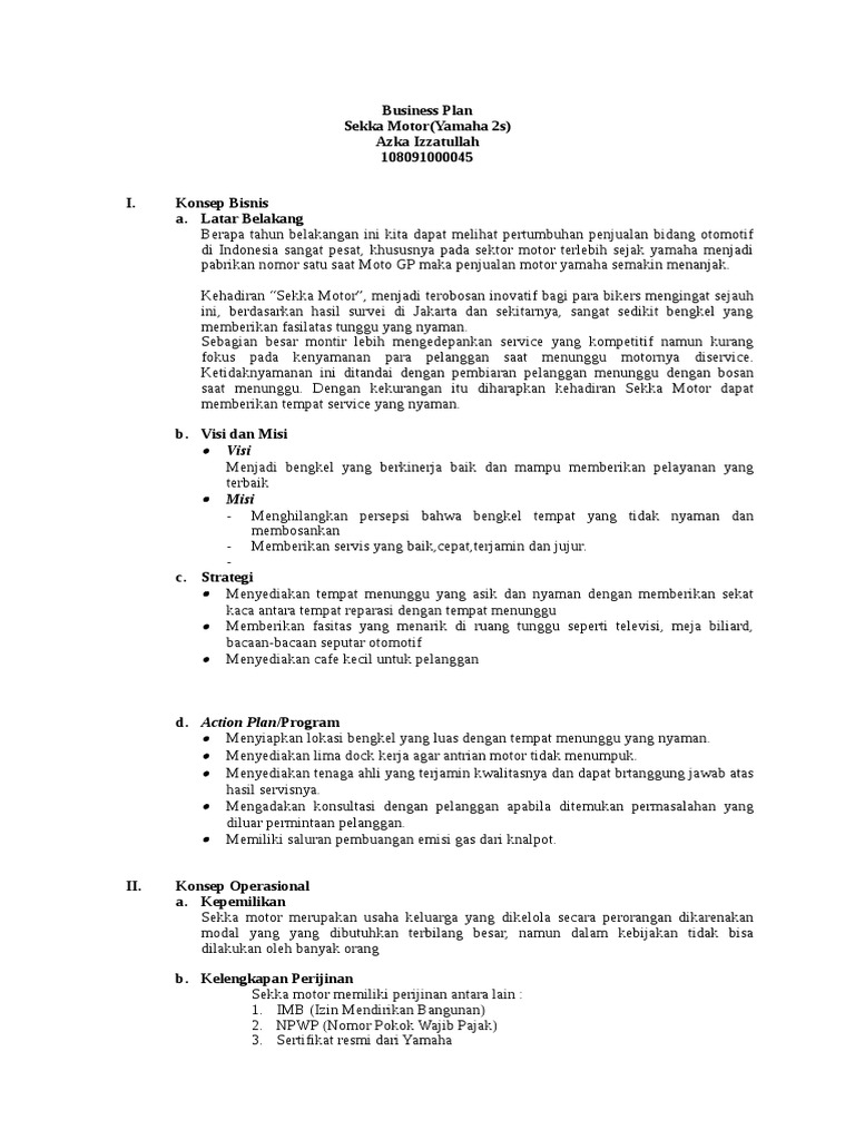 DOC) CONTOH PROPOSAL USAHA BENGKEL MOTOR.docx | safa nuriasyah - Academia.edu