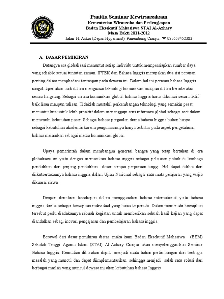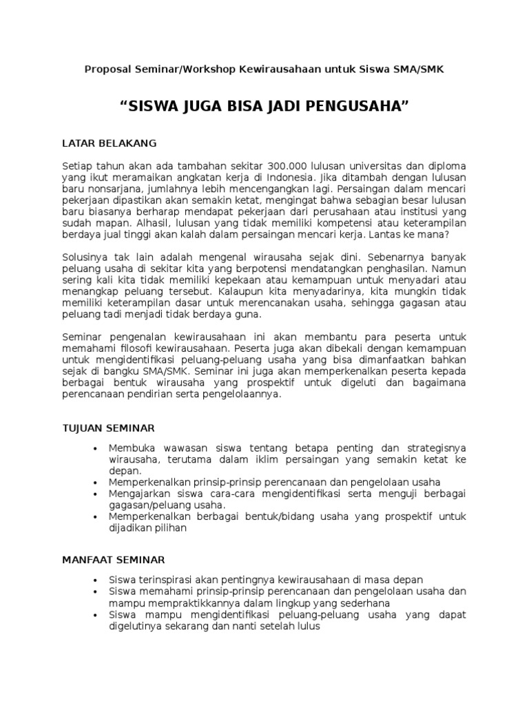 DOC) Contoh proposal kegiatan seminar entrepreneurship | Anita Jamil Hidayanti - Academia.edu