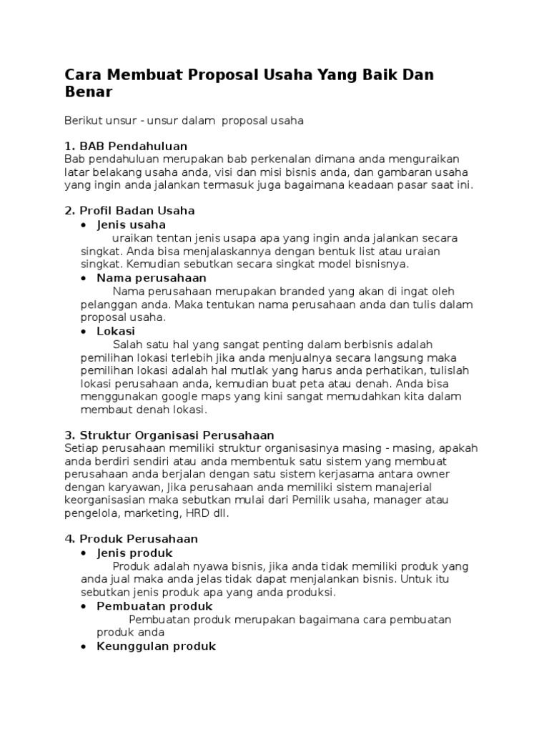 Contoh Proposal Usaha yang Baik | The plan, Proposal, Nama