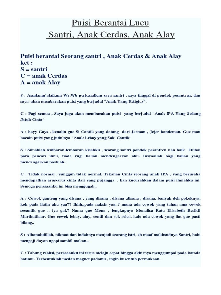 DOC) Puisi Berantai Lucu | Ruri Alfaza - Academia.edu