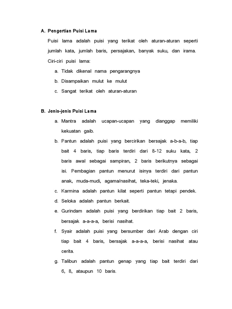 DOC) Contoh Puisi Lama Dan Pengertiannya | Boni Asri - Academia.edu