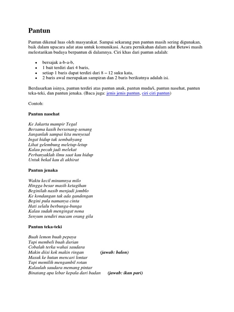 PDF) Pantun sebagai Potret Sosial-Budaya Tempatan: Perbandingan Pantun Melayu, Jawa, Madura, dan Betawi