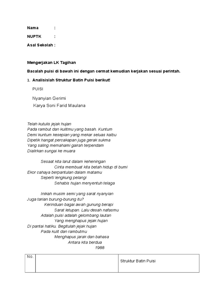 Contoh Puisi Yang Mengandung Struktur Fisik Dan Batin