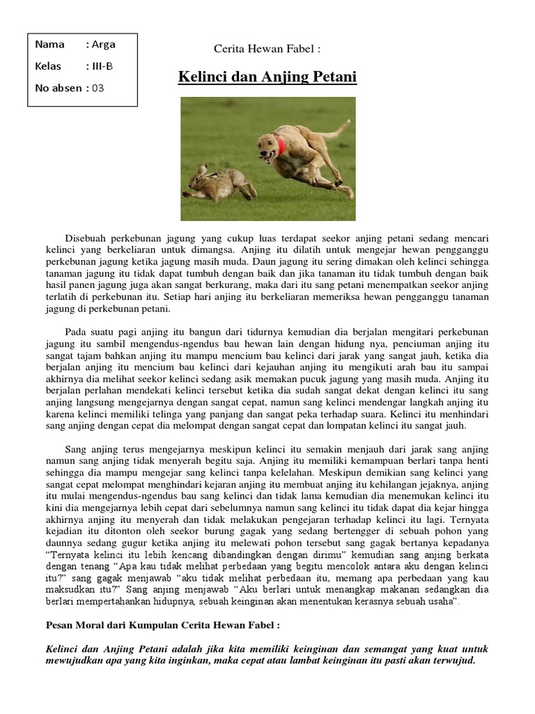 Kelinci dan Anjing Petani, Cerita Hewan Fabel, Tugas Kelas 3 SD