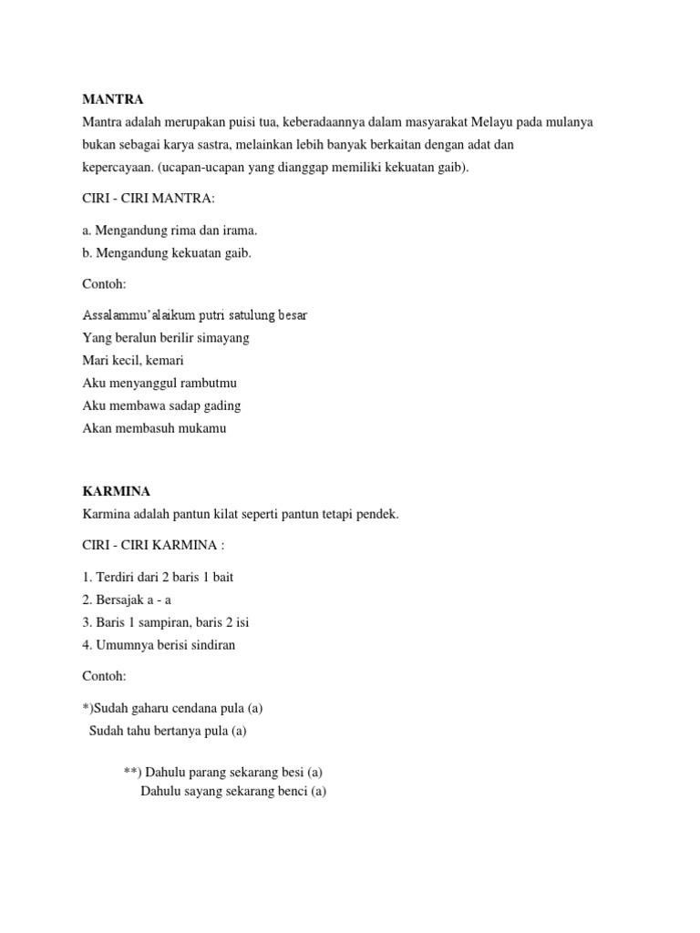 Mantra dan Syair : Pengertian, Ciri, Jenis dan Contoh | Siswapedia