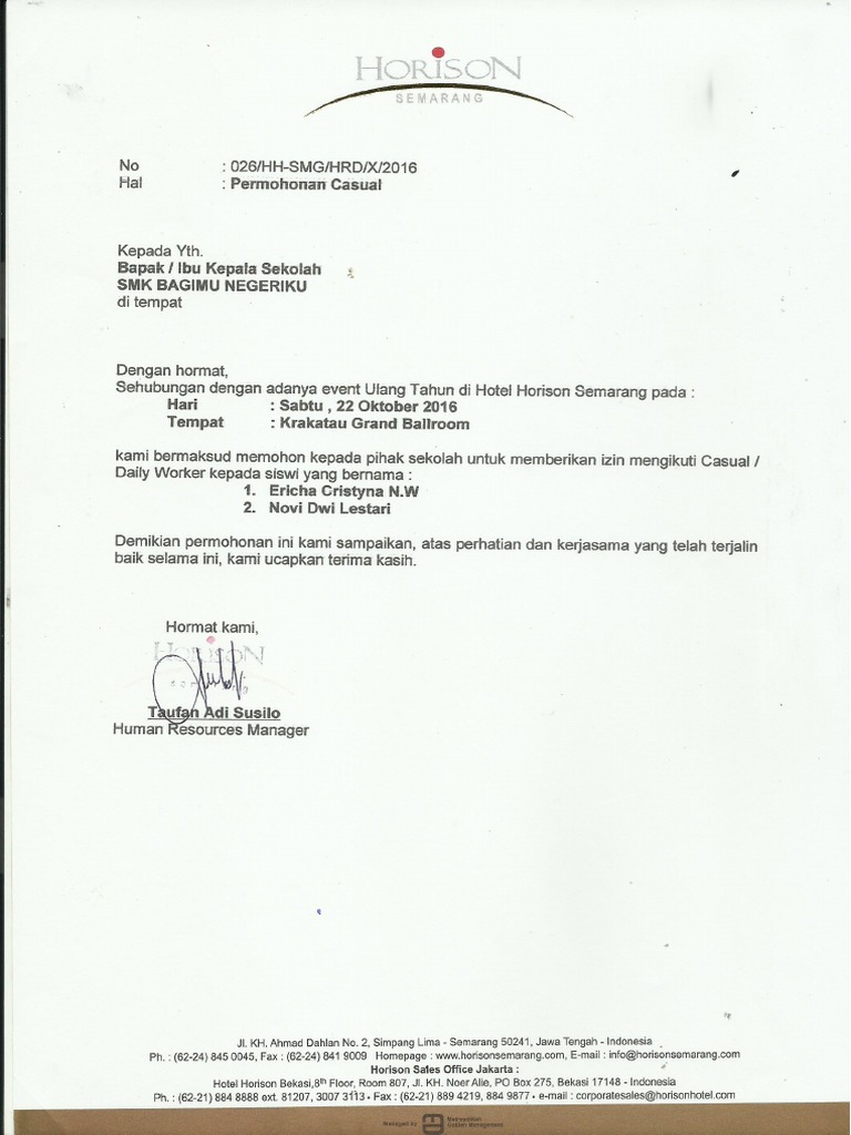 Contoh Surat Lamaran Kerja Di Hotel Sutan Raja