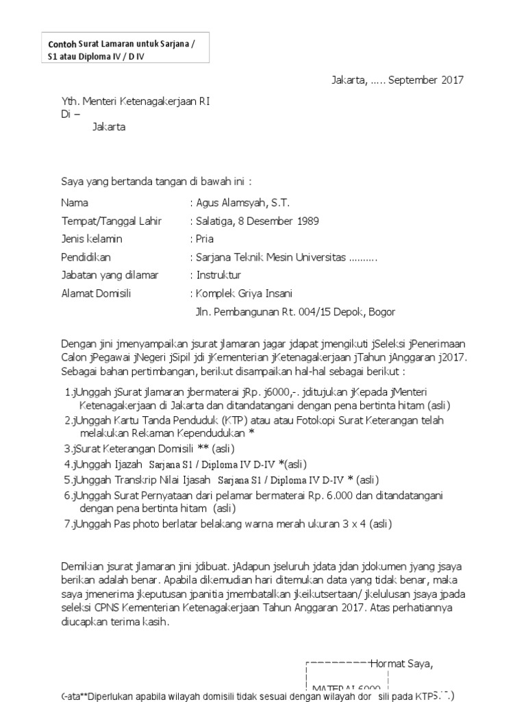 Kementerian Ketenagakerjaan on Twitter: “Berikut contoh surat lamaran sbg persyaratan u/ pendaftaran CPNS @KemnakerRI.… "
