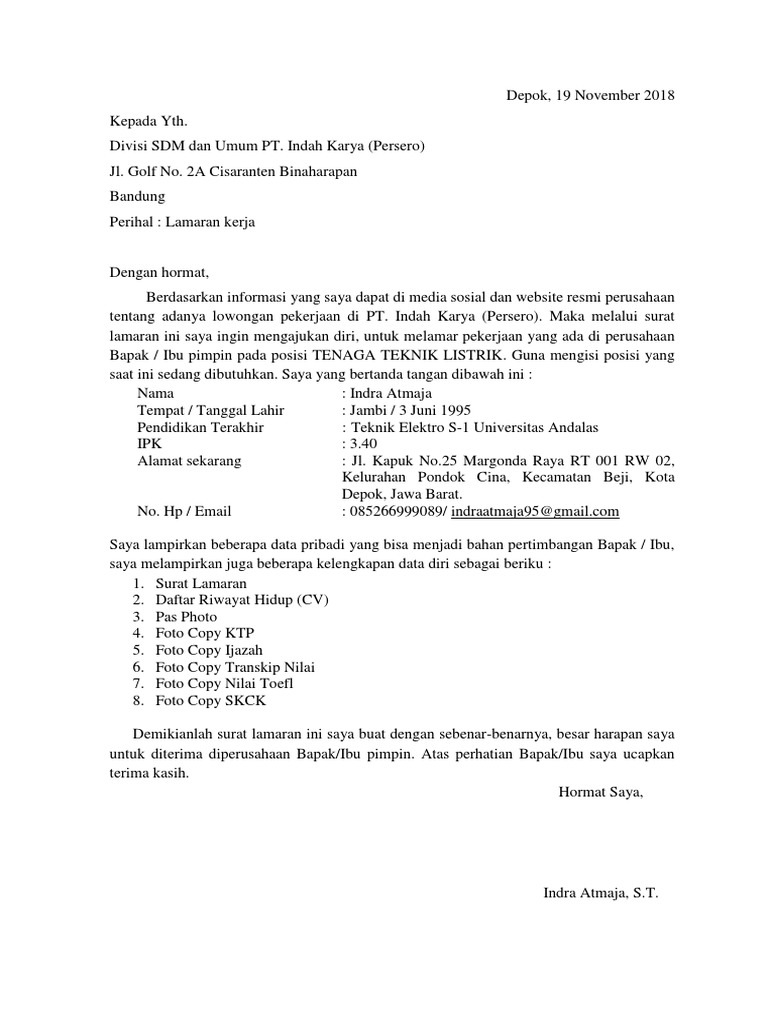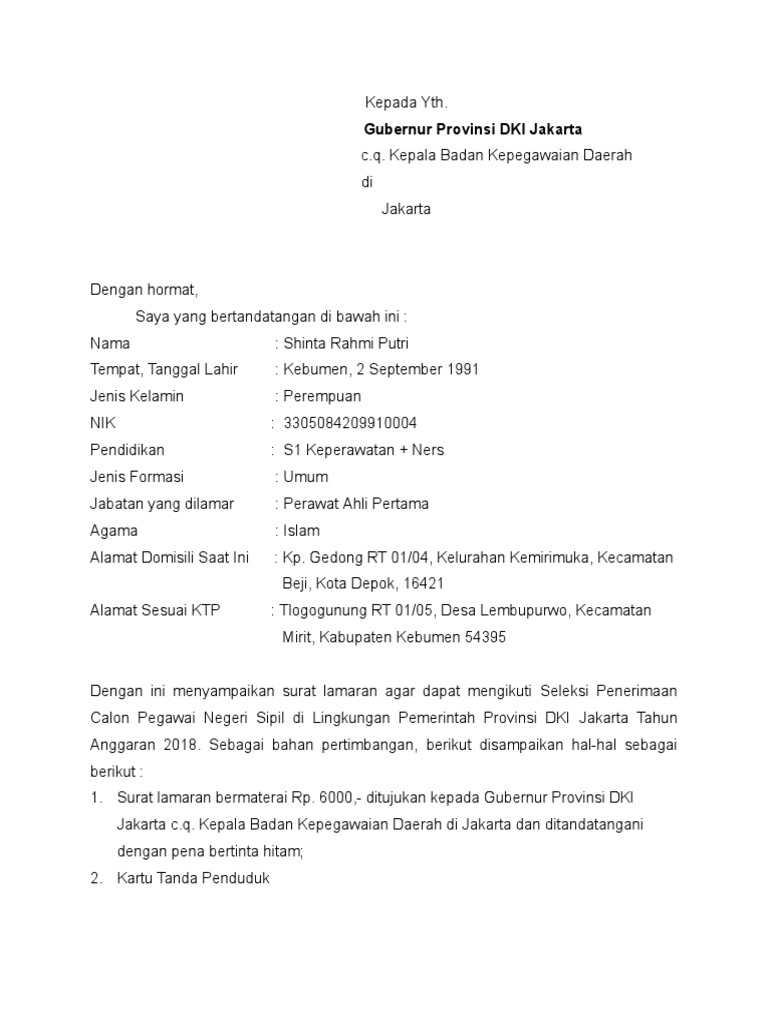 contoh surat lamaran kerja cpns lampung tengah Depok