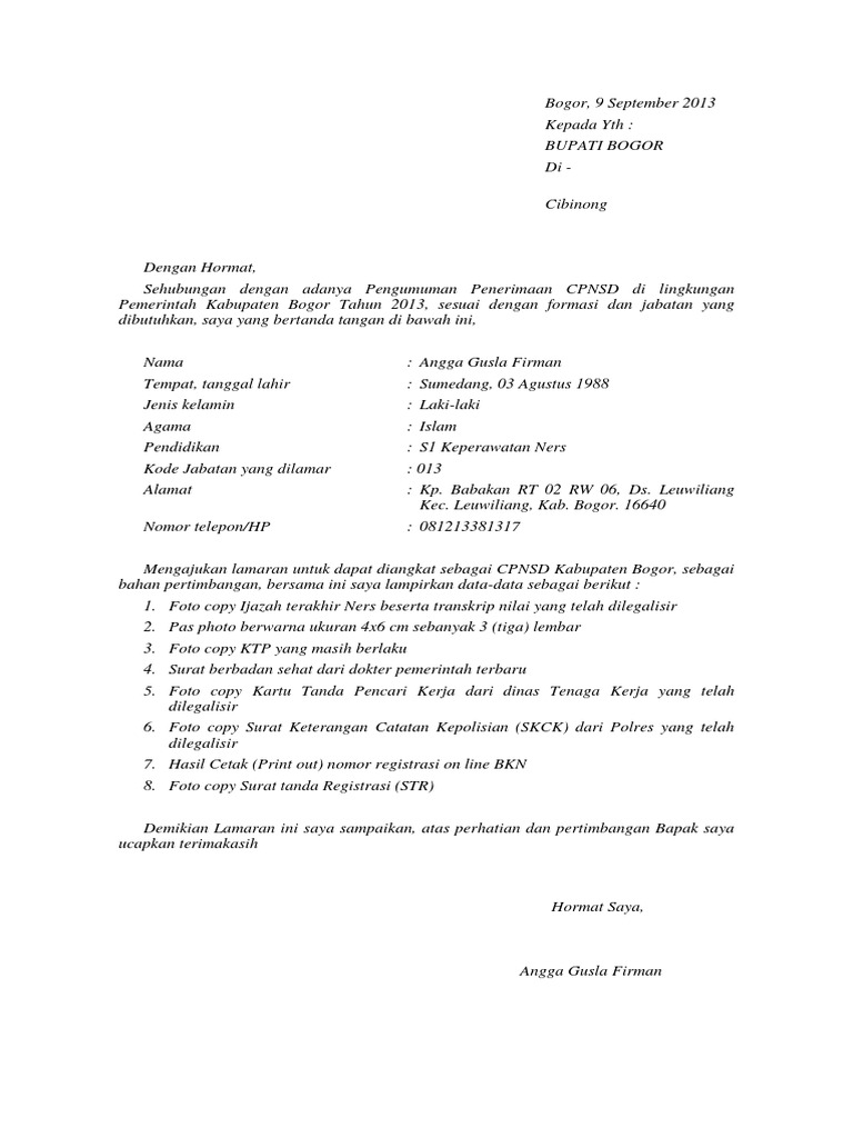 Gunakan Format contoh Surat Lamaran dan… - Bkpsdm Cirebon.Kab | Facebook