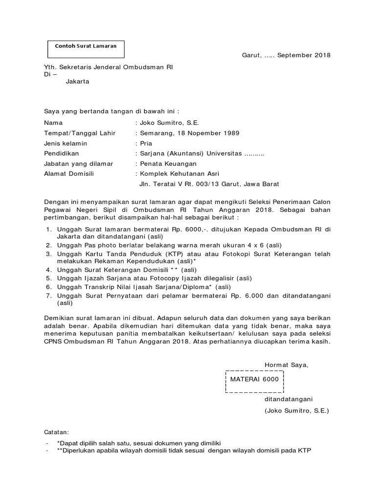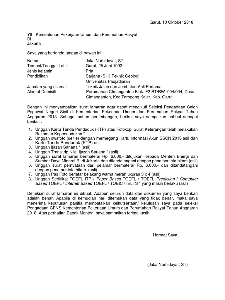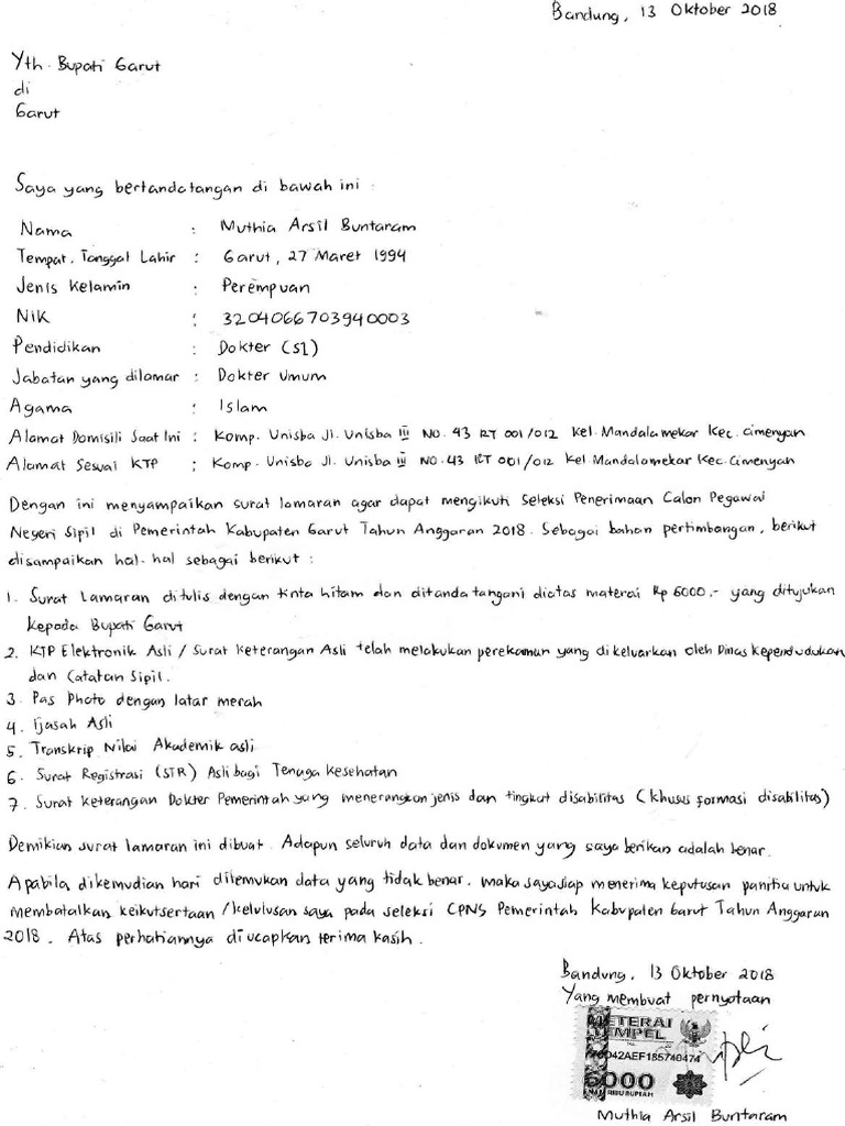 Contoh Surat Lamaran Cpns Kabupaten Garut