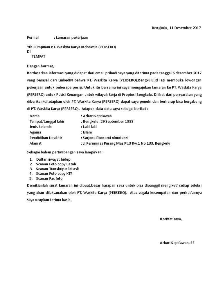 Contoh Surat Lamaran Cpns Provinsi Bengkulu