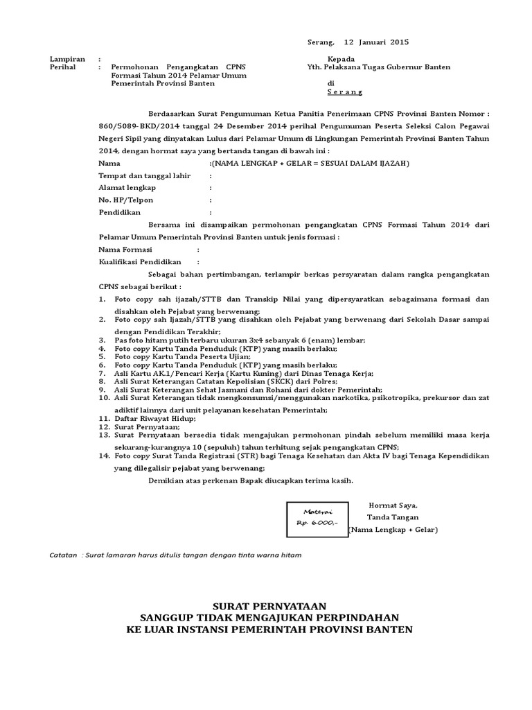 Contoh Surat Pernyataan dan Lamaran CPNS | Kabar Tobo Kito