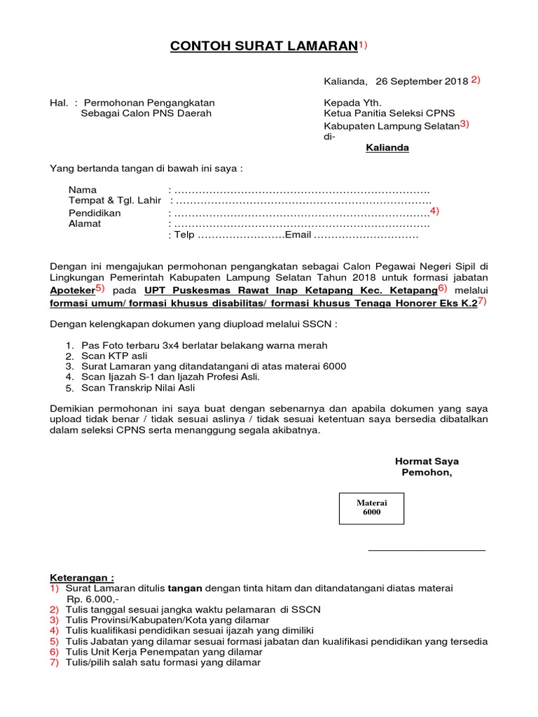 Contoh Surat Lamaran Cpns 2019 Kabupaten Pesawaran