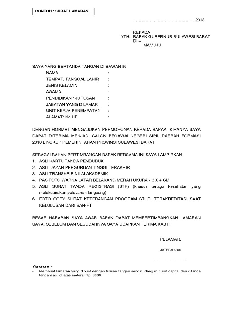 PDF) Contoh surat lamaran CPNS Kab. PALI | hariee as - Academia.edu
