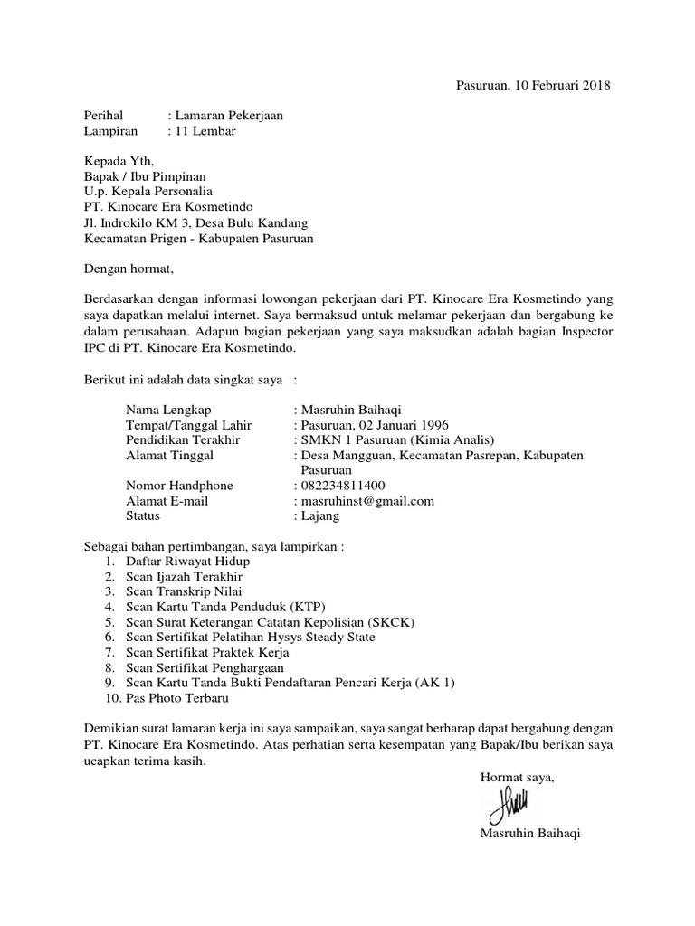Contoh Surat Lamaran Kerja Analis Kimia - Contoh Jol