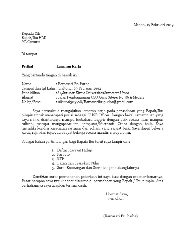 Contoh Surat Lamaran Kerja - Posts | Facebook