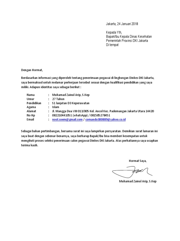 Contoh Surat Lamaran Kerja Di Dinas Kesehatan Provinsi