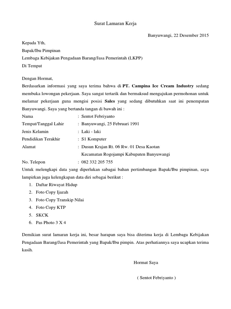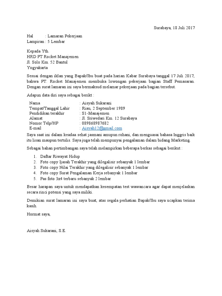 2 Contoh Surat Lamaran Kerja Sesuai Kaidah Bahasa Indonesia Yang Baik dan Benar 2020 - Blogotech