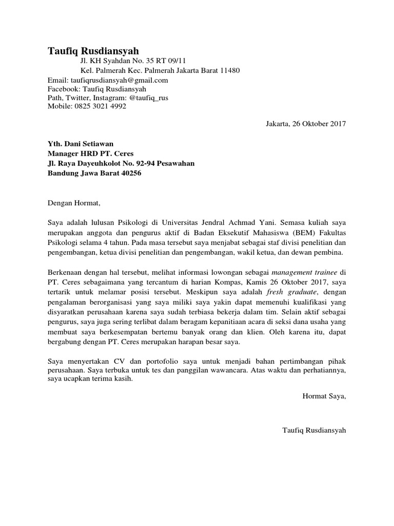 Surat Lamaran Kerja Format Yang Benar Research Papers - Academia.edu
