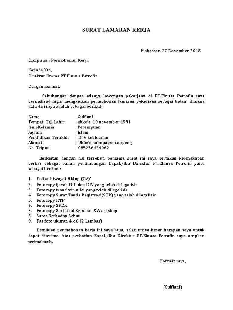 Contoh Surat Lamaran Kerja Ke Pt Elnusa