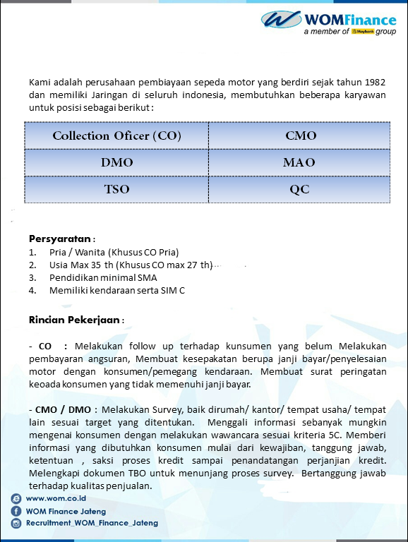 Informasi Lowongan Pekerjaan Wom Finance Collector Officer Subang April 2019 - Motekar Subang