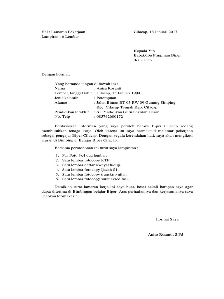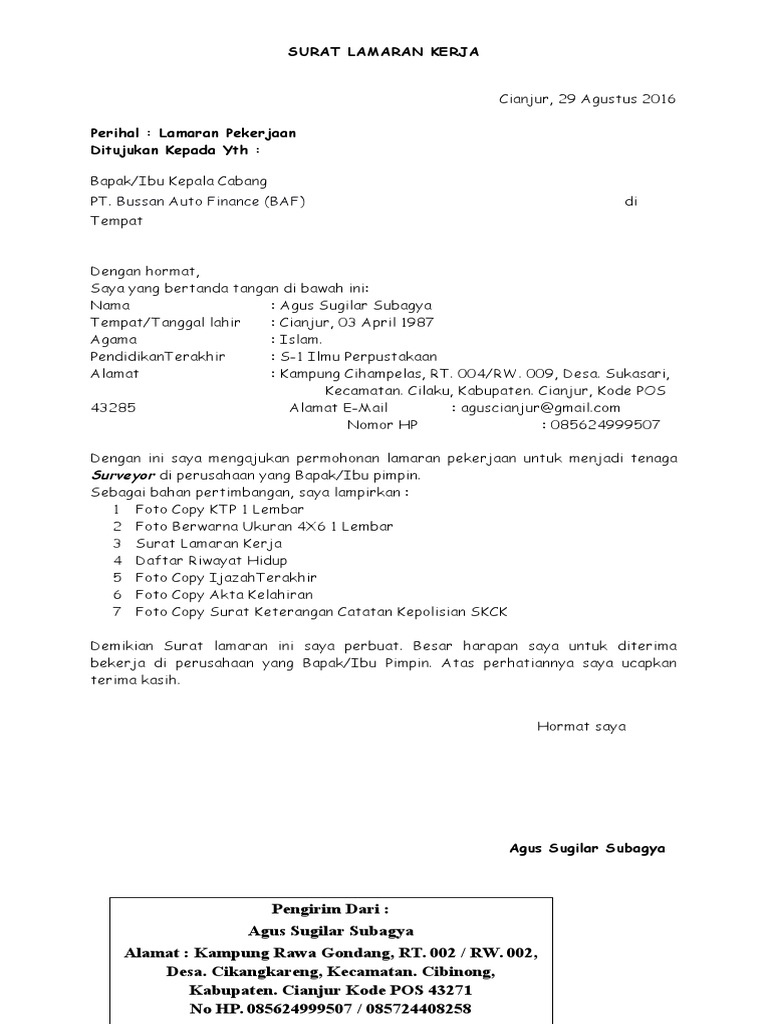 Contoh Surat Lamaran Kerja Via Pos - Contoh Surat Lamaran Kerja Umum