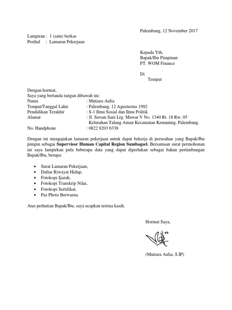 Contoh Surat Lamaran Kerja Pt Wom Finance