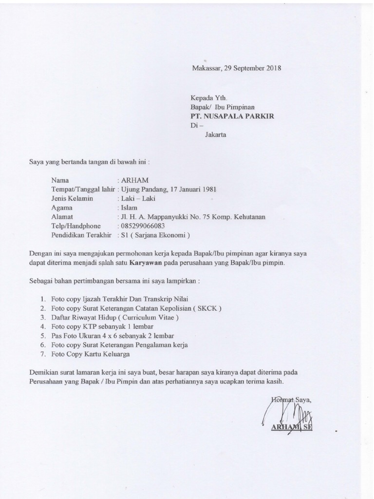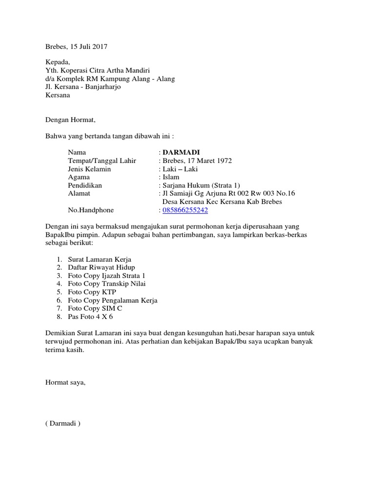 Contoh surat lamaran kerja | CV Terbaru | Cekkembali